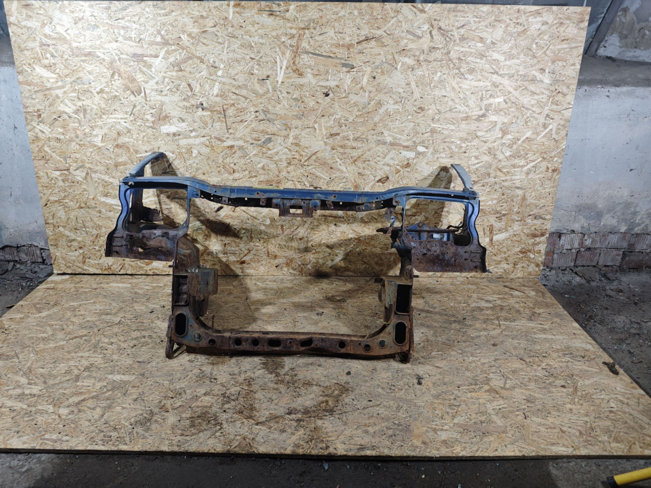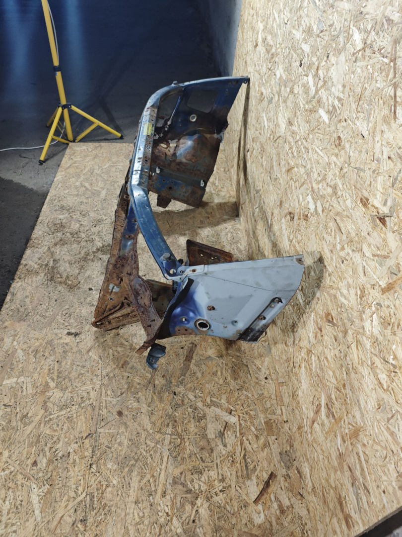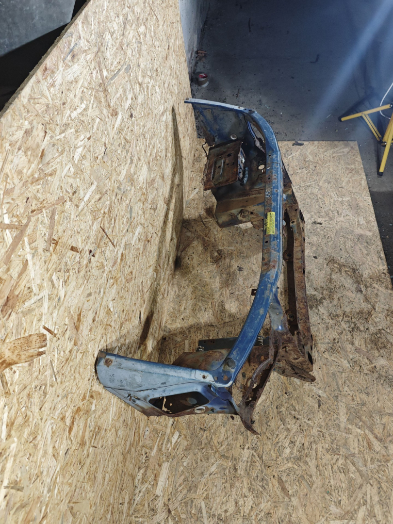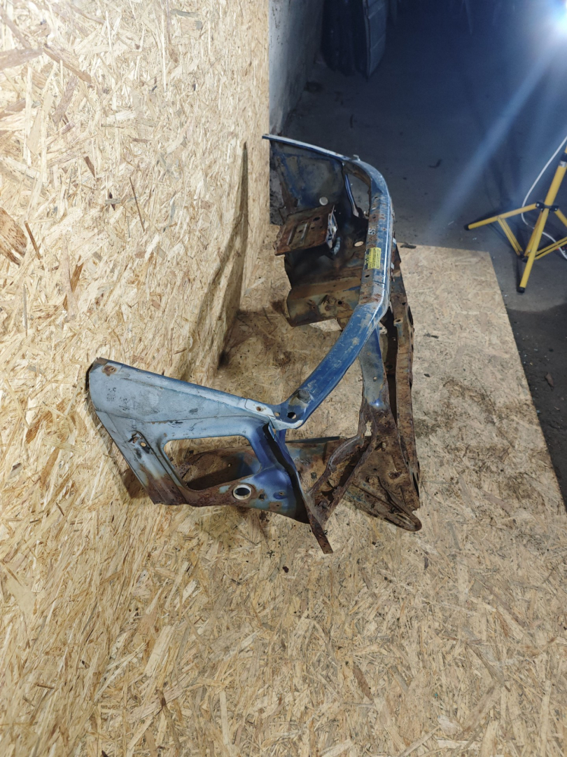 Немного замят низ. Сквозная корозия под правой фарой